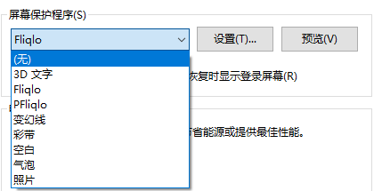 5、可以选择不同的屏幕保护程序。