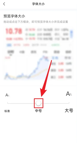 在【字体大小】页面,拖动滑块到所要字体大小位置即可。