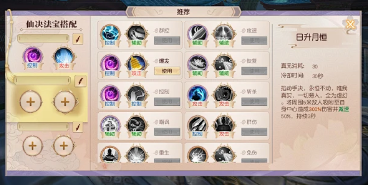 法宝搭配直接影响战斗表现,选择属性互补的装备组合可激活隐藏加成。心法系统提供战术多样性,针对不同敌人切换对应心法能显著提高胜率。建议根据角色定位构建专属培养方案。