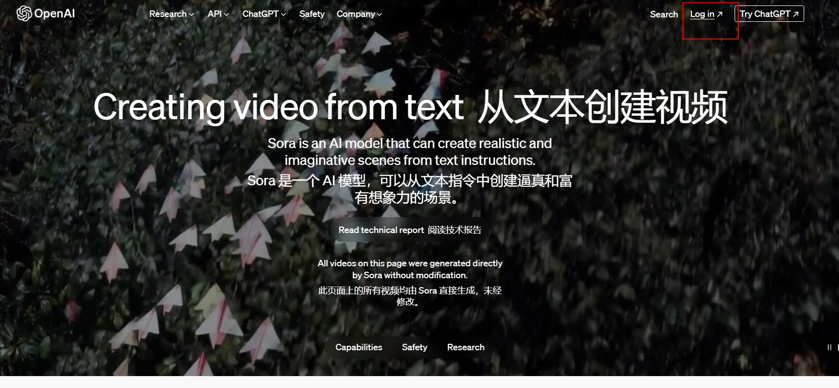 第一步:通过上述网址访问Sora官方网站页面。