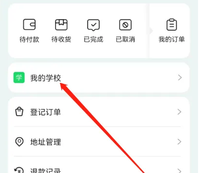 打开安卓版阳光智园的个人中心,点击我的学校。