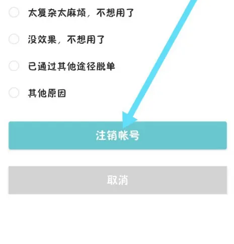 选择注销的原因,点击注销帐号。