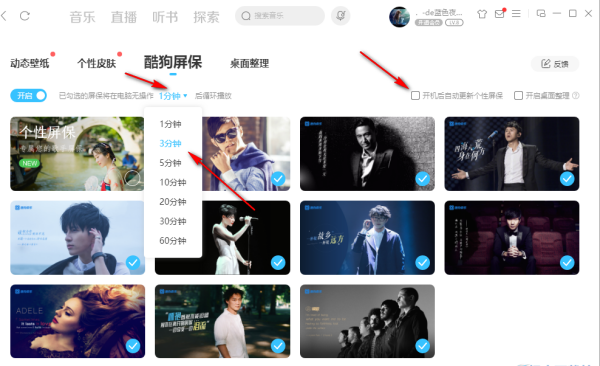 开启动态壁纸后,你可以根据自己的喜好选择不同的动态壁纸样式。酷狗音乐提供了丰富多样的主题,涵盖了音乐、自然、等各种类型,总有一款能满足你的审美需求。