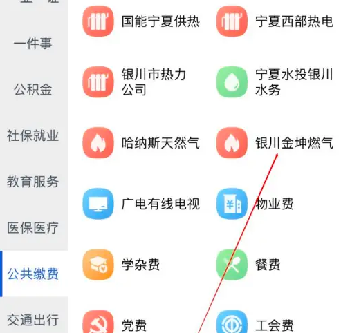 最后在“更多”页面里,我们选择“银川金坤燃气”点击进入即可查看。