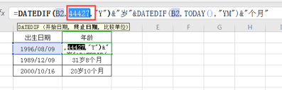 按下回车键后,就能得到精确到月的年龄差值啦。这里的计算逻辑是,datedif函数会忽略日期中的日部分,只计算起始日期和结束日期的月份差。