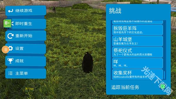 6、挑战多样化的游戏内容,包括破坏巨羊雕像、探索古老遗迹、加冕山羊女王等趣味玩法;