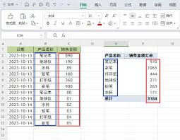 此时,会出现数据透视表字段列表窗口。将需要分类的字段拖到“行”区域,比如按产品类别、地区等进行分类。把要汇总的数据字段拖到“值”区域,例如销售额、销售量等。