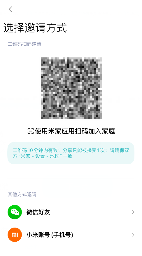 在米家app中选择自己想要进行管理分享的家庭,然后再在我的界面中选择家庭的加号,可以更改家人的权限,之后会出现一个二维码,让对方在米家app中扫码就可以加入该家庭进行管理了。