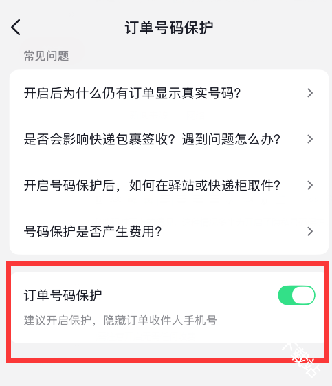 4、将订单号码保护后面的选项关闭即可,但同时也需注意开启无需任何收费