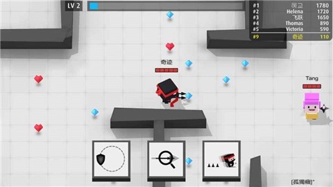 1、玩家每次复活与升级都可以自由选择自己的武器和技能,用随机产生的技能展开激烈的战斗;