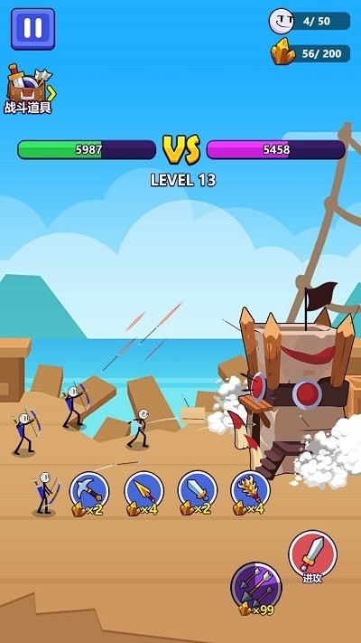作为一款火柴人画风的游戏,在游戏中灵活的排兵布阵对抗对手,展现自己的聪明才智,运用自己独特的技巧如解锁各种兵种来提升自己战斗力,战胜对手。随时都可以竞技冒险,无限精彩任你玩,喜欢就来试试吧。