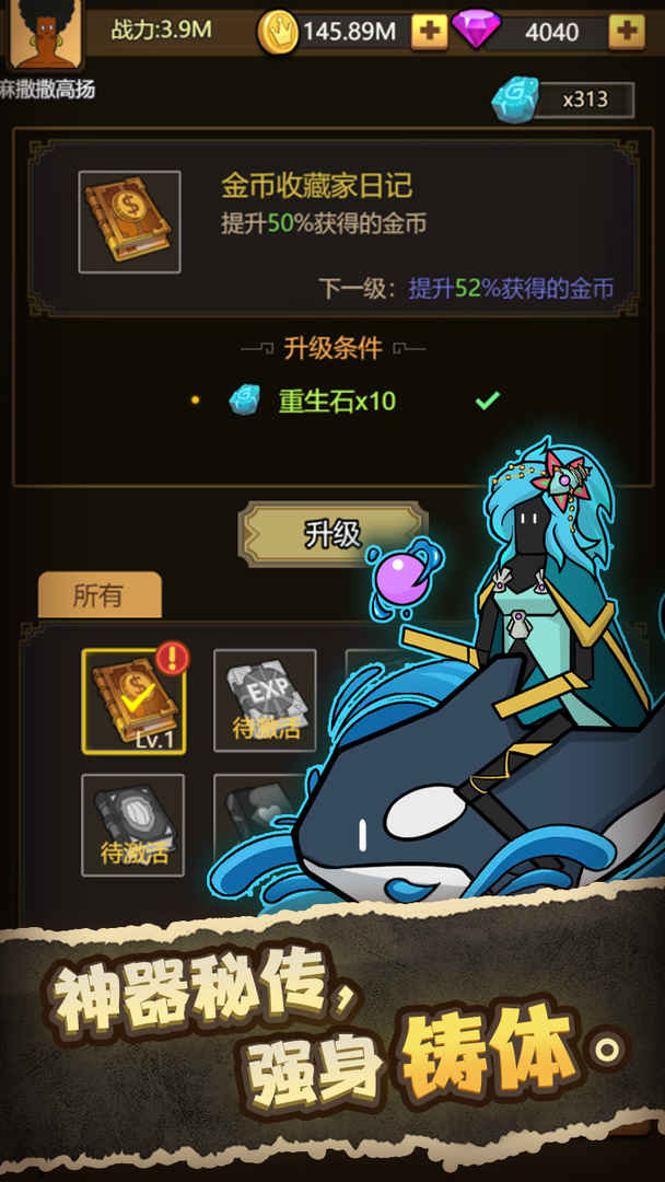 1.玩家需要在游戏中扮演一名异世界穿越者,通过战斗和升级,获得欧皇专属神器和秘传,招募阿飞卡队友,一起探险异世界大陆,寻找传说中的宝藏;
