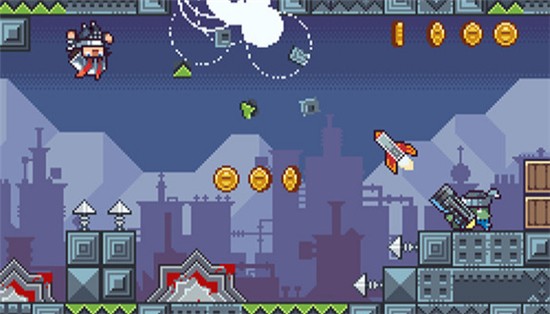 4、敌人威胁:像素世界中存在着各种敌人和障碍,玩家需要不断地克服它们并收集能量球来解锁更多关卡。