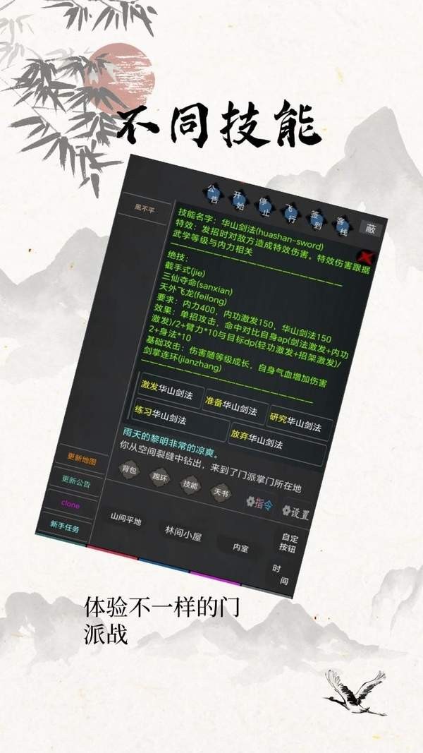 3.文字呈现:游戏以文字形式呈现,具有丰富的剧情和角色设定,让玩家能够深入体验武侠世界的魅力;