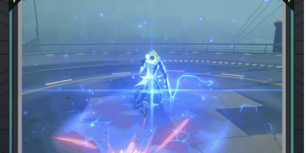 对前方大范围区域发动强力连续打击,随后发动终结一击,造成大量电属性伤害,招式发动期间拥有无敌效果。