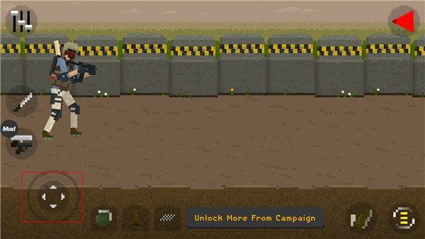 1、玩家们在下载并安装完成游戏之后,将能够操控自己角色在游戏的世界里面进行冒险,与僵尸之间进行战斗,第一步的新手教学就是通过左下角的轮盘来控制角色进行移动。
