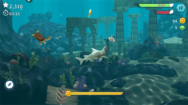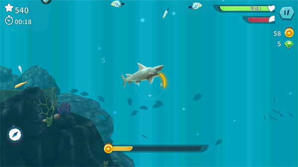 4、玩家们可以按住屏幕可以加速鲨鱼进行捕食。