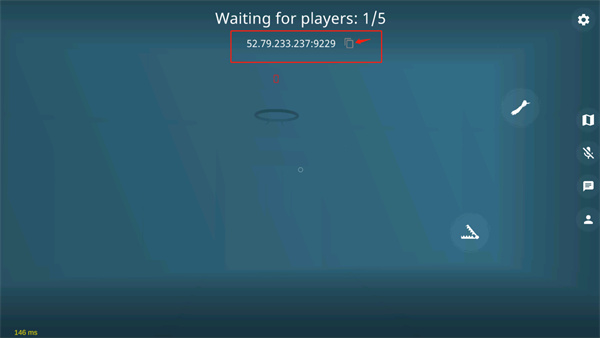 10.开始加载游戏,在游戏最上方的一串代码就是房间号,可以点箭头所指的按钮来复制分享给朋友。