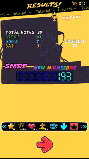 3、随着音乐的节奏会掉落箭头图标,需要玩家们在其掉落至下方重合时点击。