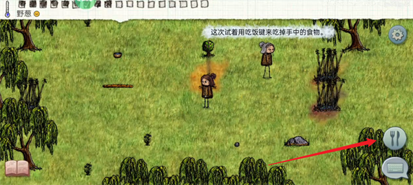 3、点击右下角的吃饭按键,就能够将自己手中的食物吃掉。