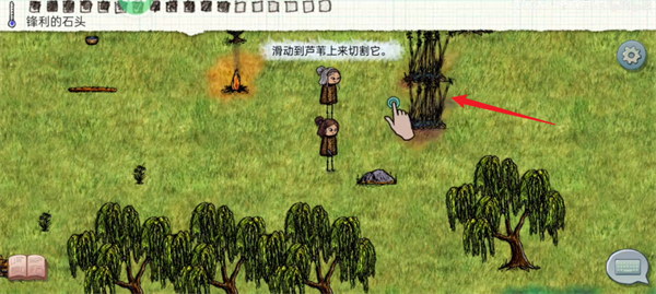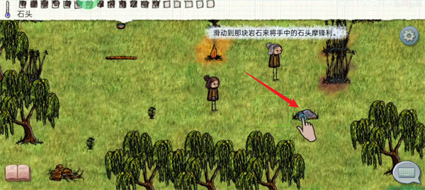 5、点击岩石来进行交互,将手中的石头磨尖。