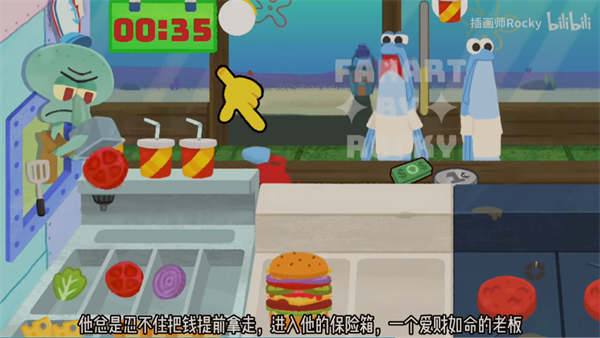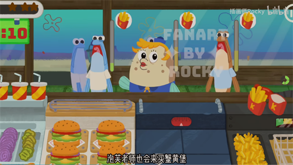 蟹堡王传奇手机版是一款由民间玩家自制打造设计制作的经营模拟类手机游戏,这款游戏中是以经营模拟玩法作为背景题材进行设计打造制作出来的,玩家们将以一名店铺老板的身份进入到场景之中,开启一场趣味性十足的经营模拟之旅,爱好者们在游玩的过程可需要为根据店铺内顾客的需求制作出美味的汉堡,以此来获取到客人的好感度和金币收益,让玩家们体验到真实的经营模拟体验,快来和小编一起在免费下载游玩体验一下吧!