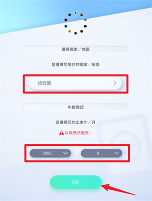 1、玩家们进入游戏之后,将会需要填写各种资料,国家一栏里面选择【新西兰】,然后出生日期要填写一个成年的时间点。