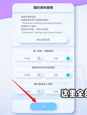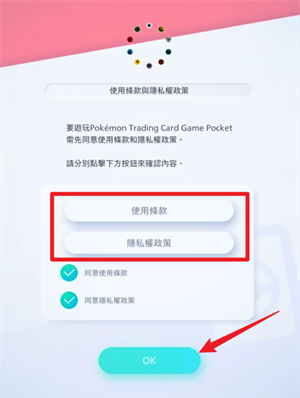 2、然后是使用条款以及隐私政策,注意这两条都需要你点击进入查看之后才能够勾选,点击OK进入下一步。