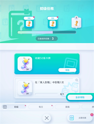 4.此外你完成游戏内部的任务也将能够获取到一定的奖励,帮助你更加快速的抽取到想要的宝可梦卡牌。