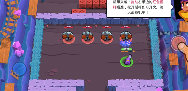 3、拖动右轮盘则可以让自己的角色进行攻击。