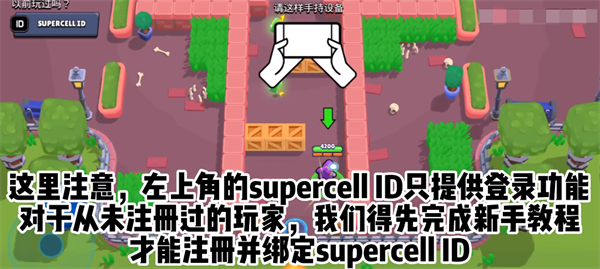 3、这里注意,左上角的supercellID只提供登录功能,对于从未注册过的玩家,我们得先完成新手教程才能注册并绑定supercellID。