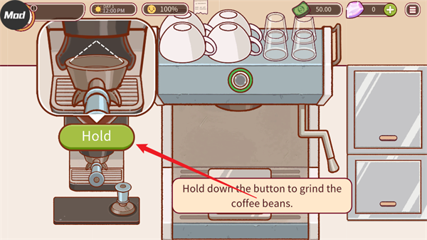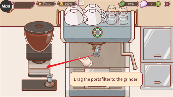 2、完成对话之后会来到厨房之中,开始自己对咖啡的制作。