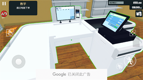 3、进入到超市内后玩家们对准电脑然后点击左侧的手指图标。