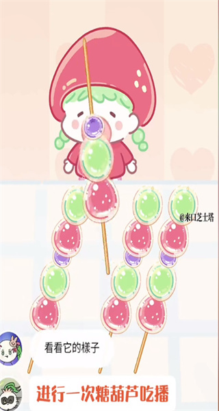 4、糖葫芦制作完成后,玩家们进行一场糖葫芦吃播。