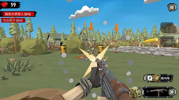 1.开始游玩之后会面对从四面八方涌来的无数僵尸,需要拖动屏幕瞄准不同的目标进行快速射击。