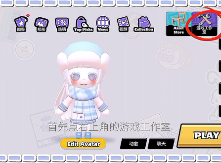 1、玩家们进入游戏之后,首先需要点击右上角的游戏工作室。