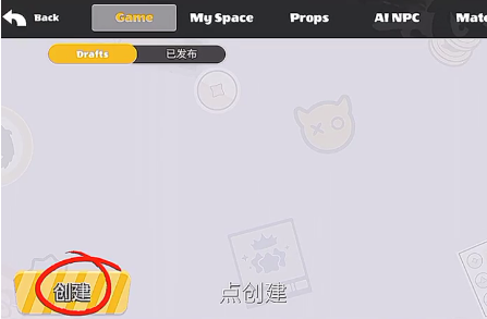 2、然后在游戏工作室的界面的左下角点击创建。