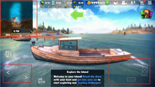 2、将置身于一艘船上。您可以使用左侧按钮控制方向,右侧按钮控制油门和刹车。