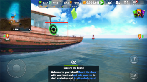 3、还可以选择以第一人称视角跳下船,点击绿色圆形图标即可上下船。