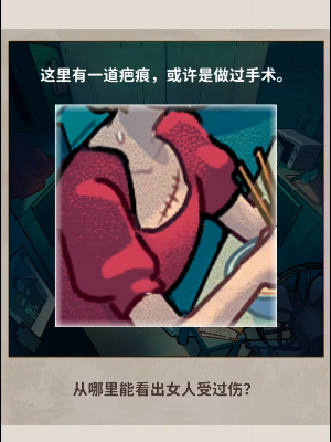3.在不同的图片之中寻找各种诡异的地方,调查线索收集更多的证据,找出凶手。