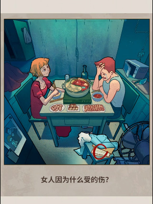 4.点击窗口,得知外面下雪,女人却在流汗的不正常原因。