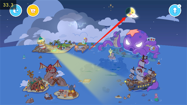 3、玩家们点击画面右上角的月亮即可切换白天和黑夜。
