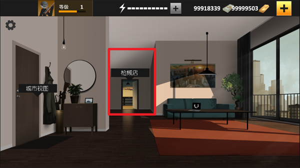 1、下载安装进入到游戏后,在屏幕中点击枪械店。