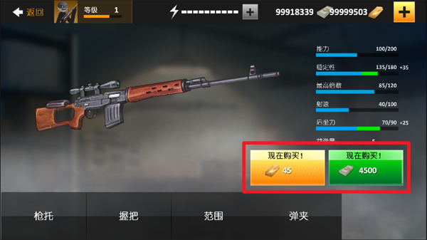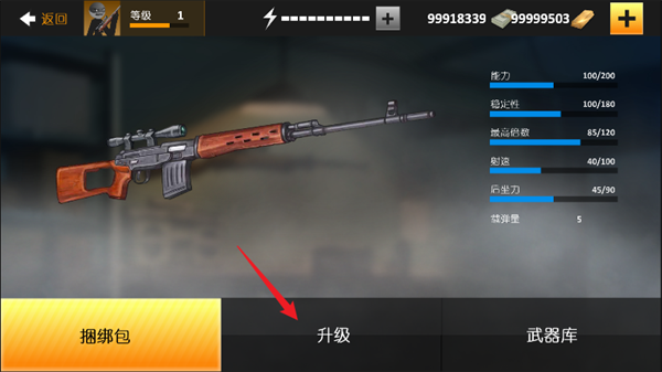 2、玩家们可以消耗物资对枪械进行升级打造,以此来提高武器的整体属性数据。