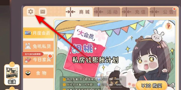 2.随后点击左上角的齿轮,进入设置模式。