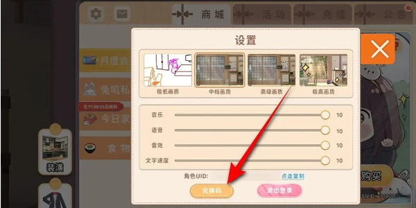 3.点击下方的兑换码选项进入。