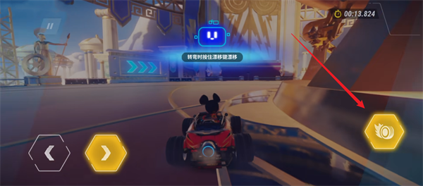 7、当遇到转弯路口之后,可以点击右下角的漂移键来进行飘逸,更加顺畅的进行驾驶。