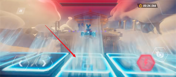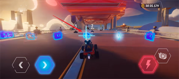 12、玩家们也可以通过右下角的跳跃键来让自己的卡丁车主动的进行跳跃,并跨越场景当中的障碍。