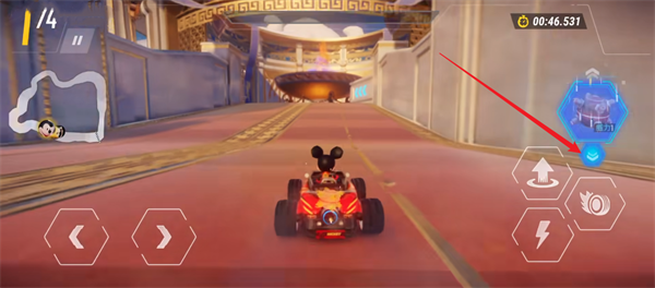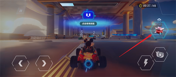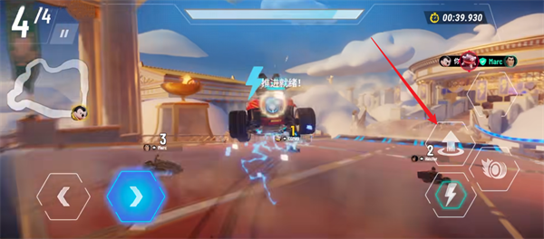 5、开始比赛之后,玩家们需要使用左下角的方向键来控制自己的卡丁车进行竞速。