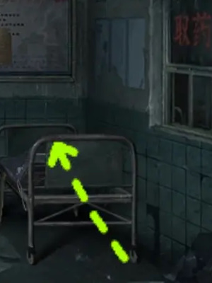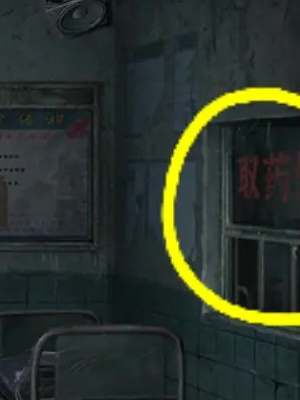 14.来到走廊点击左侧门将照片放到空相框内,移动玻璃框上的模块,将病房门打开。